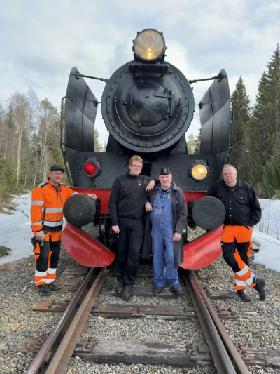Gänget samlat framför ångloket E10 1746, Vildmarkståget april 2024.