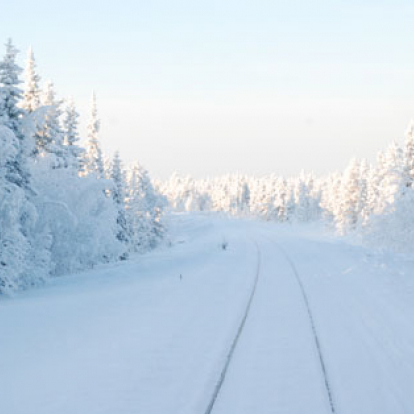 Du åker med Inlandsbanans södergående tåg till stationen i Röjan, där väntar Snöpendelns buss som kör dig vidare till skidbacken.