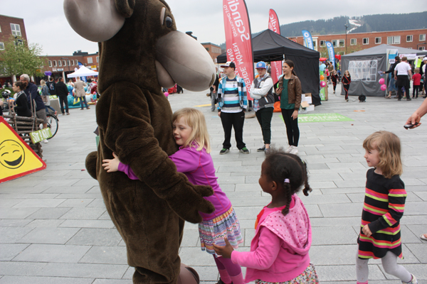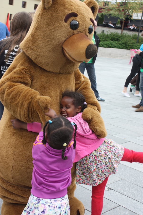 Det hände mycket i Östersund lördagen den 24 maj. Rälsy kom på besök med resten av storsöodjuren samtidigt var teckningstävlingen Jag åker tåg i full gång och Älgen och Björnen fick många goa kramar.