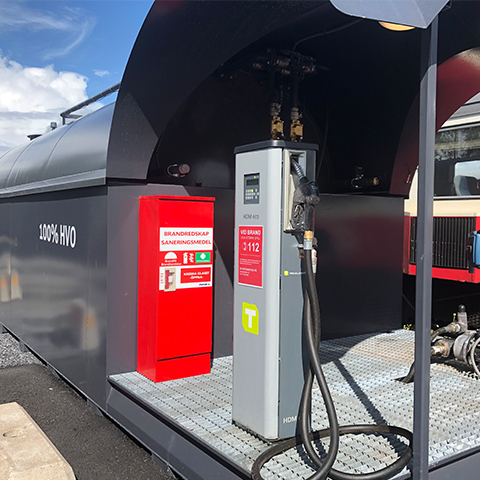Första anläggningen står nu på plats i Östersund varifrån bolaget kan tanka både järnvägsfordon som landsvägsfordon. Leverantör av 50 m3 cisternen är Energifabriken som också levererar HVO-drivmedlet. I en kommande upphandling under 2019 så planeras ytterligare tankanläggningar längs Inlandsbanan och då i Mora, Sveg, Hoting, Storuman samt Arvidsjaur.